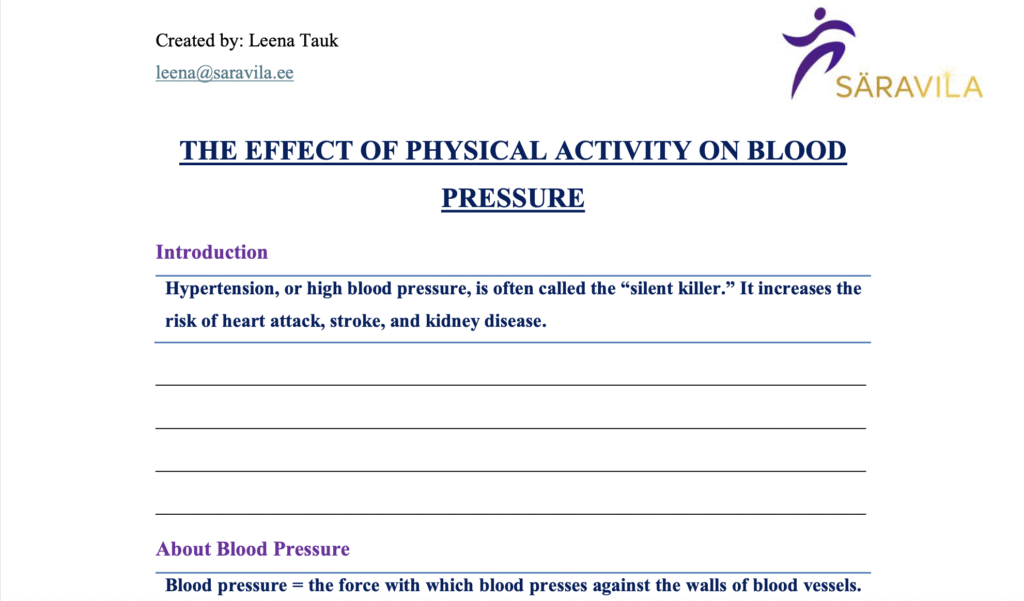 ✨ The lecture “Get Your Blood Pressure Under Control: The Impact of Physical Activity on High Blood Pressure and Cardiovascular Health,” created by Säravila, was prepared by request of Kristiine District Government as part of the program “Autumn Lecture Series for Seniors”. ✨